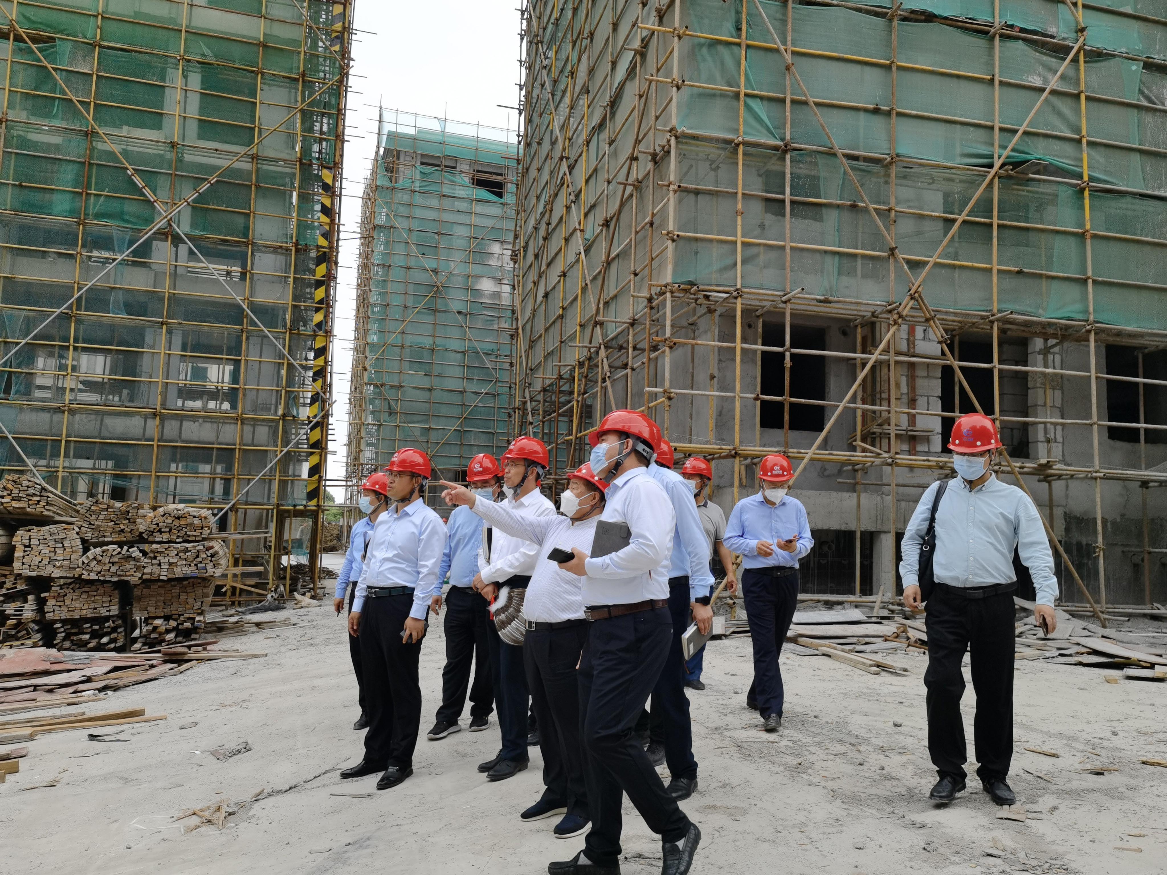 董事长吴振山一行进入工地现场实地了解海兴天山熙湖项目工程进展,看到项目施工人员挥汗如雨,施工井然有序,董事长随机与工作人员亲切交谈,询问疫情防控、防暑降温措施、安全生产等有关情况,并代表集团向施工人员表示慰问和感谢,在听取了项目班子人员详细介绍后,对海兴天山熙湖项目的整体工作表示充分肯定并提出了相应的指导要求。